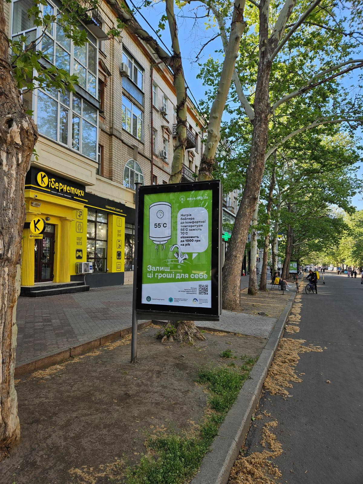 Mykolaiv became the first city in Ukraine where the national awareness campaign "Keep This Money for Yourself" officially launched offline. Here, for the first time, the campaign’s ideas came to life — white and green posters and city lights with simple, practical energy-saving tips have appeared throughout the city.