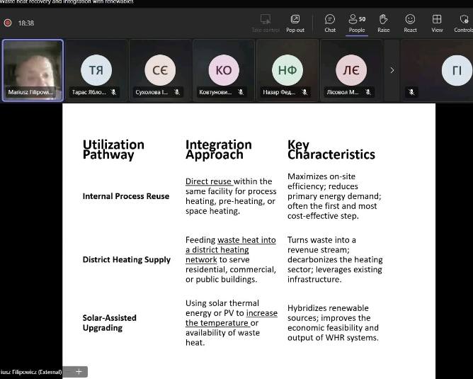 Within the UKRENERGY project, an online lecture by Prof. Mariusz Filipowicz from the Faculty of Fuel and Energy, AGH University of Krakow (Poland) was held on November 19th, 2025, titled Waste heat recovery and integration with renewables.