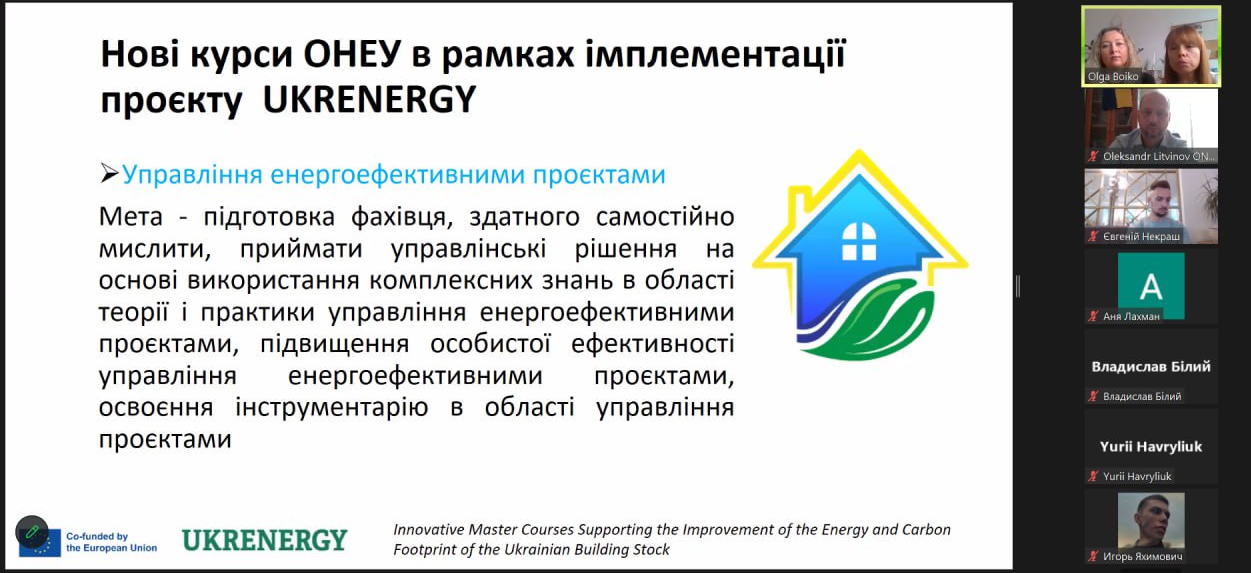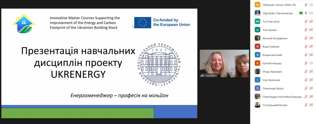 On September 2024, 16 at 2 pm the teachers of the Department of Accounting, Analysis and Audit and the Department of Business Economics and Business Organisation of the Odessa National Economic University presented to the graduates of all faculties the list of new disciplines introduced into the Master's programme within the framework of the UKRENERGY project and aimed at developing theoretical knowledge and practical skills in the field of energy efficiency.