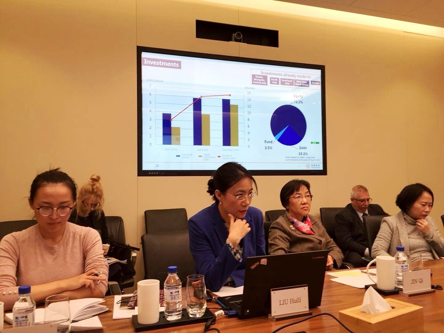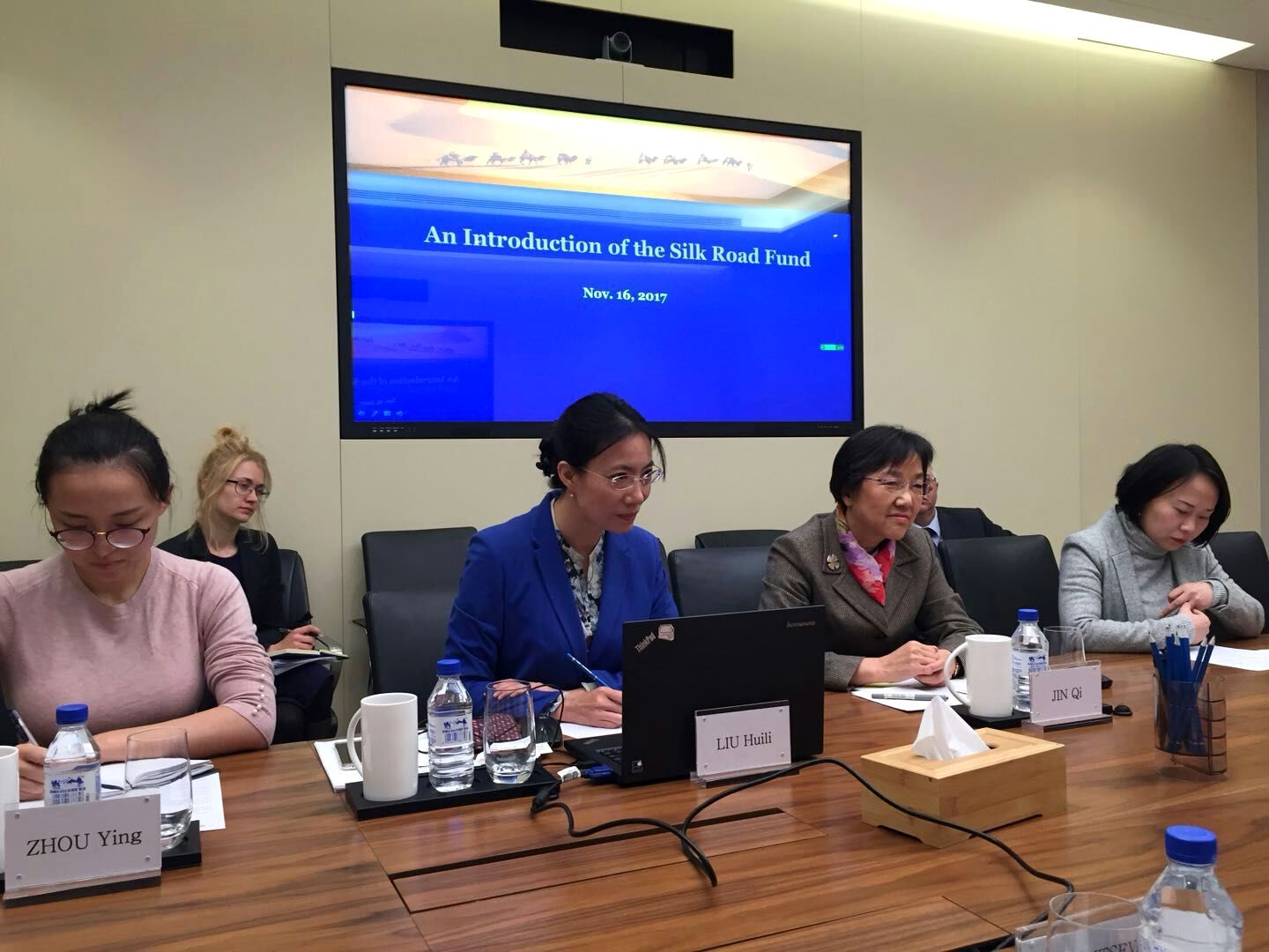 Переговори з Головою фонду «The Silk Road Fund» Цзінь Ці відбулися 15 листопада у Пекіні під головуванням заступника Міністра економічного розвитку і торгівлі України Наталії Микольської за участю Голови Держенергоефективності Сергія Савчука, а також представників Мінагрополітики, МЗС, Мінекономрозвитку, Державної інноваційної фінансово-кредитної установи, Посольства України в Китаї.