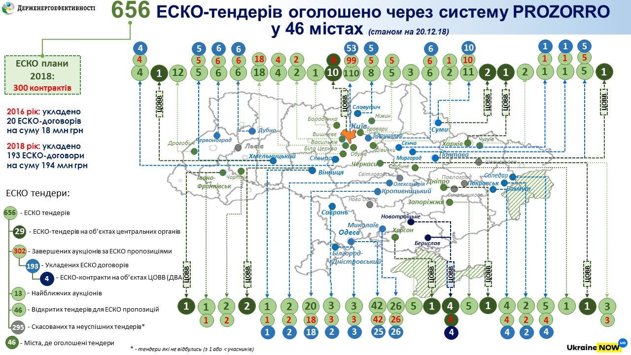 «Удосконалене законодавче підгрунтя дало поштовх стрімкому розвитку ЕСКО-ринку. Так, у 2018 р. маємо 193 укладені ЕСКО-договори на суму контрактів більше 190 млн грн., що у 10 разів більше, ніж у 2016 році», - повідомив С.Савчук.