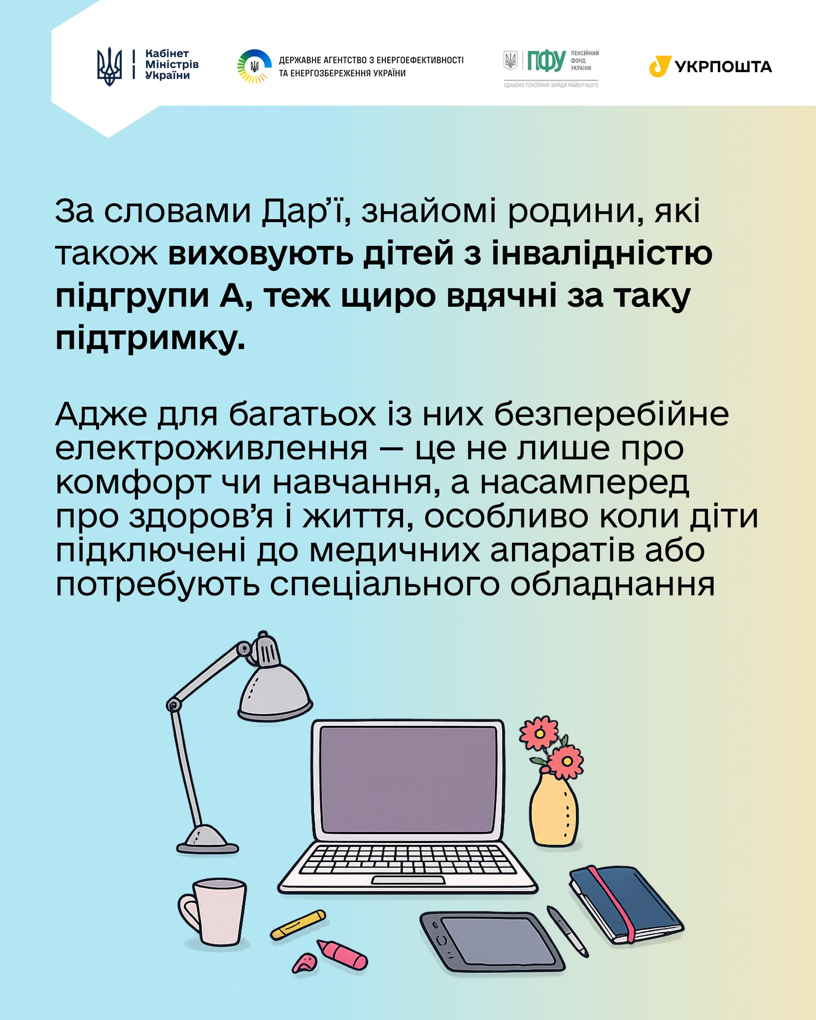 Світло, яке не зникає в момент, коли дитині потрібен кисень, спеціальне харчування, навчання онлайн або робота медичного апарата. Для родин, які виховують дітей з інвалідністю, це не про незручності. Це питання безпеки, здоров’я і життя.