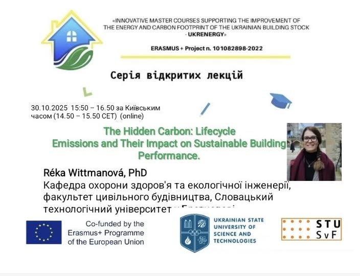Лекцію буде зосереджено на питанні викидів вуглецю в будівельному секторі, їхньому впливі на енергоефективність та сталий розвиток, а також сучасних підходах до оцінки життєвого циклу (LCA) відповідно до європейських екологічних стандартів.