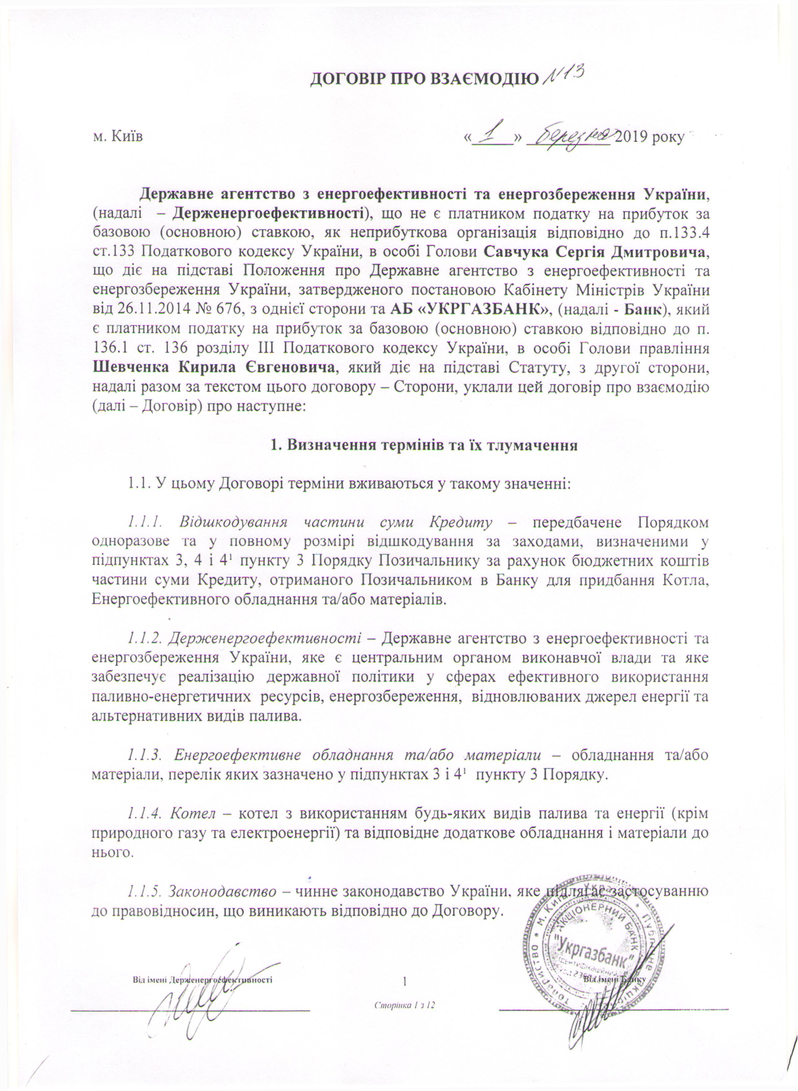 Голова Держенергоефективності Сергій Савчук із Головою правління Укргазбанку Кирилом Шевченко уклали договір про співпрацю щодо реалізації програми «теплих кредитів» у 2019 році.