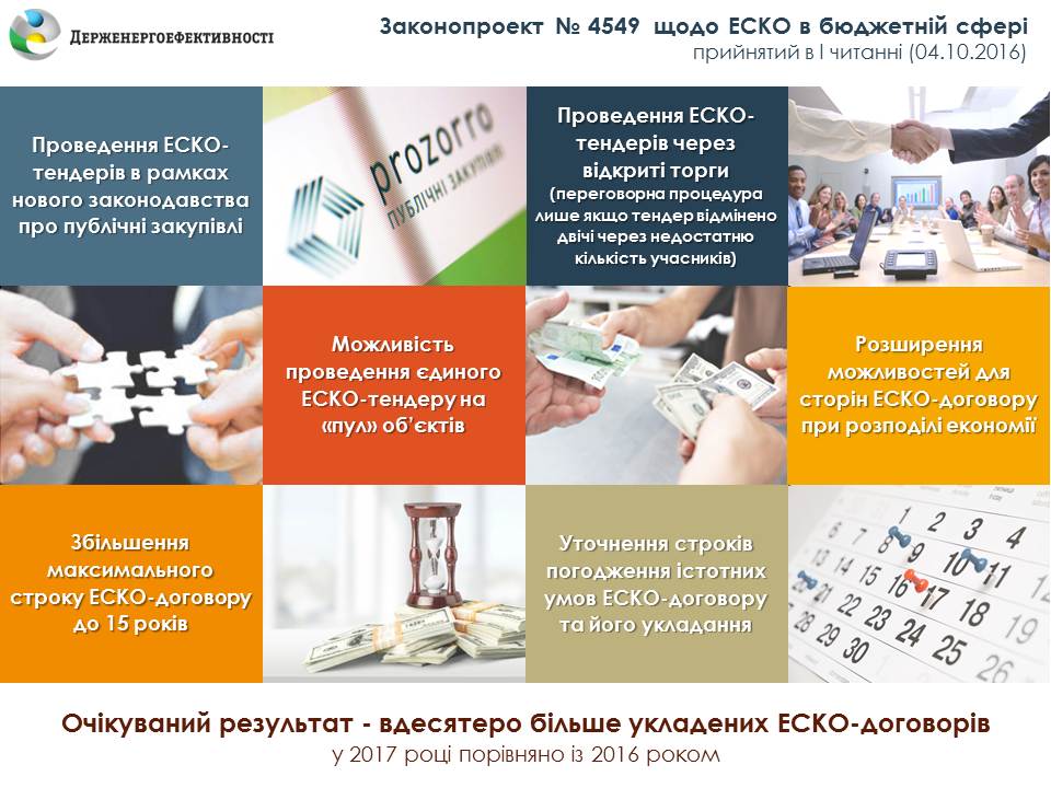 - розширення можливостей роботи ЕСКО-компаній на ринку України;