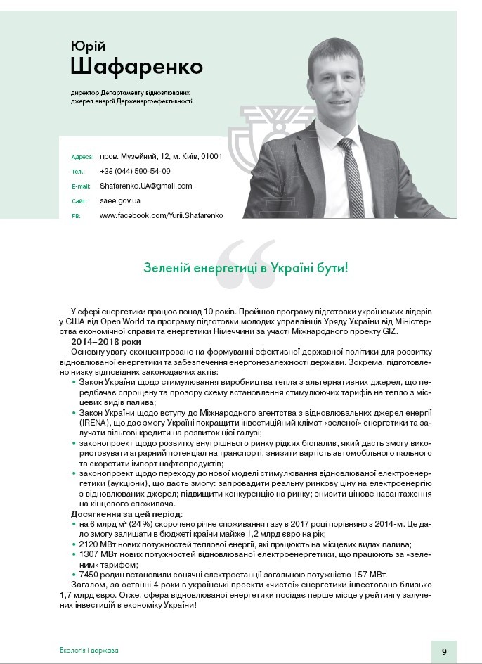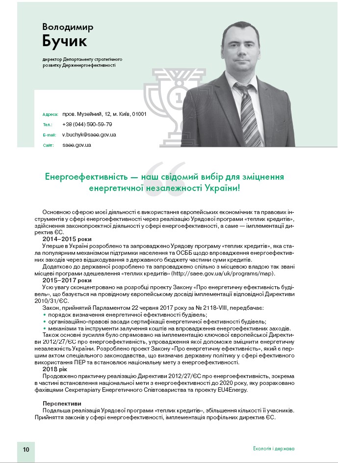 Спецвипуск, підготовлений журналом «Eкологія підприємства», об’єднав експертів, які роблять внесок у розвиток енергоефективної та енергонезалежної країни. Це представники державних органів влади, бізнесу, профільних асоціацій, міжнародних організацій.