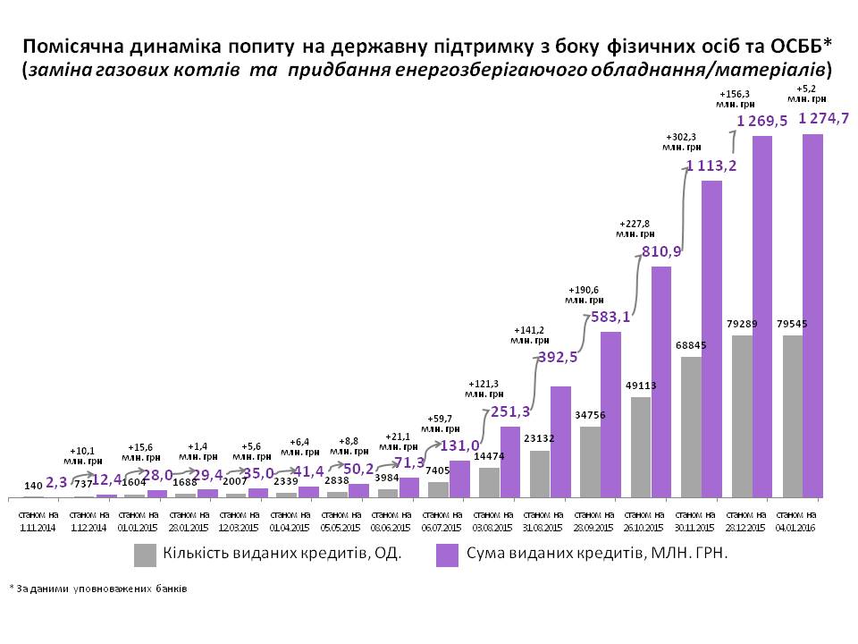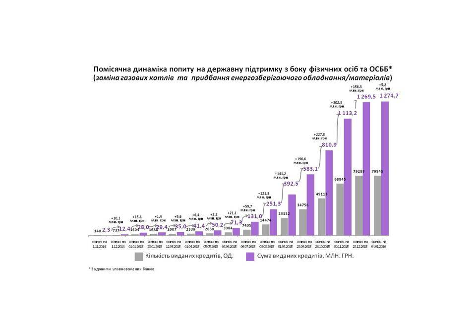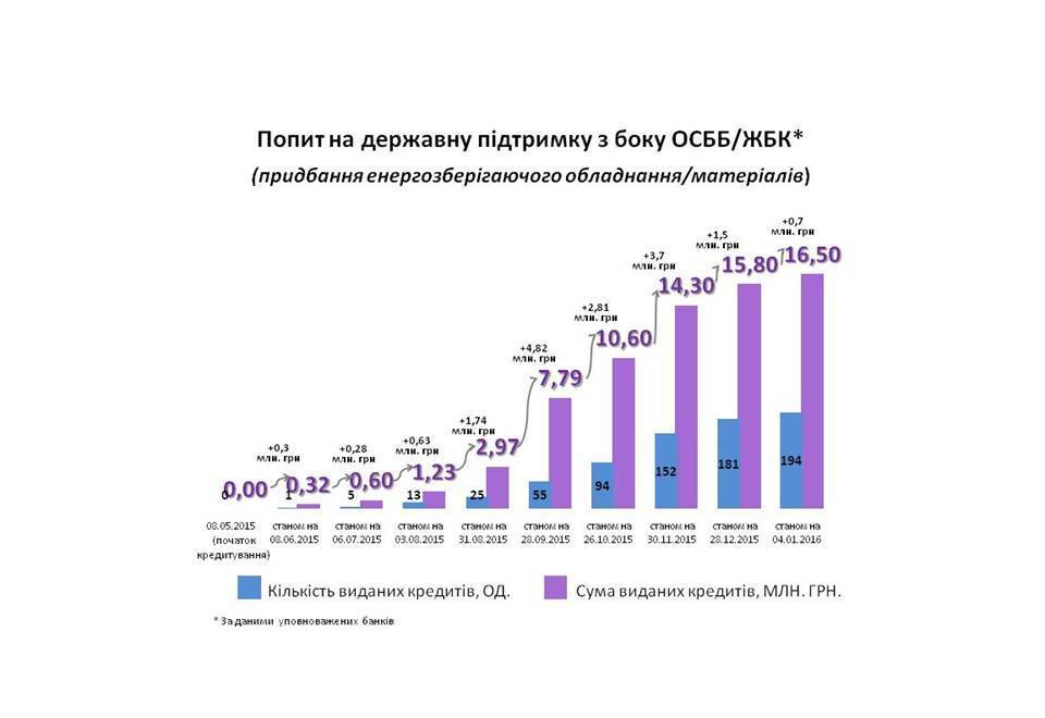 Результати щотижневого моніторингу державної програми з термомодернізації будівель свідчать про стабільний попит на «теплі» кредити. З 28 грудня 2015 року по 4 січня 2016 року громадяни взяли «теплих» кредитів на 5,2 млн. грн.